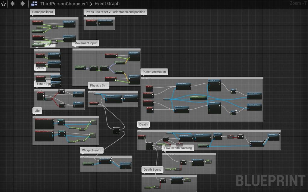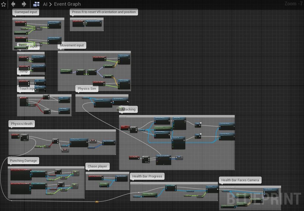 I had to create some new systems like how the physics works and how the punch animation is fired. This is also where I can call the widgets I need as well as edit the health of the player character.
